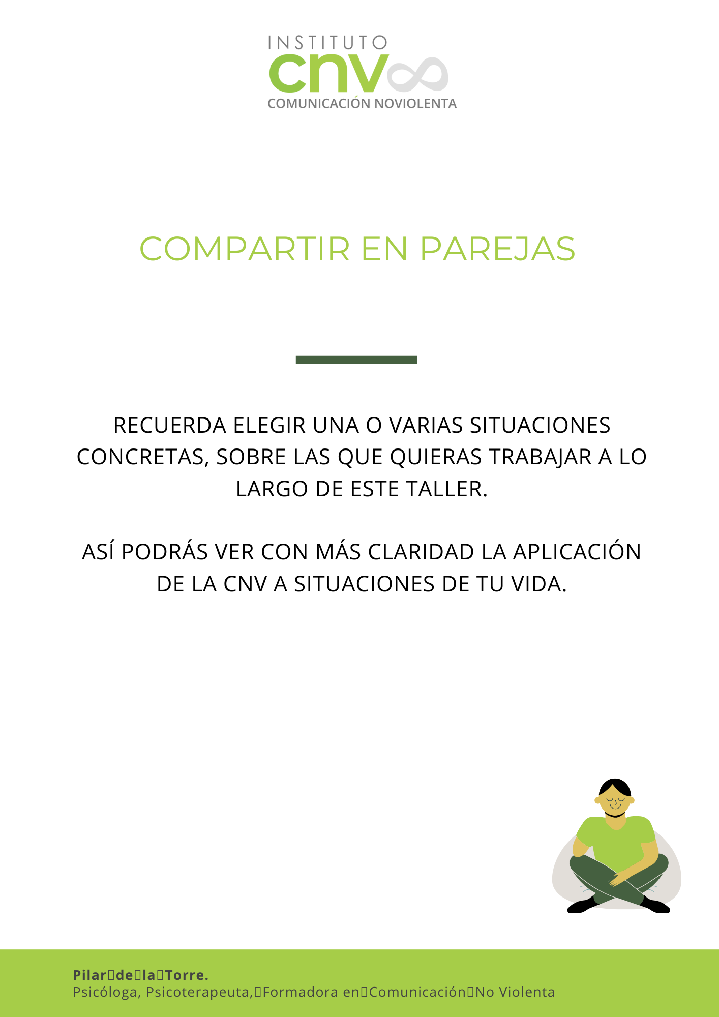 3) Este moderador se pondrá en contacto con Julio en info@comunicacionnoviolenta.com para que cree la reunión virtual y os envíe a todos los participantes los enlaces para entrar en el grupo de prácticas. Esto funcionará de manera similar a como se entra en el taller de formación, con la diferencia de que os veréis todos los participantes del grupo en la pantalla.